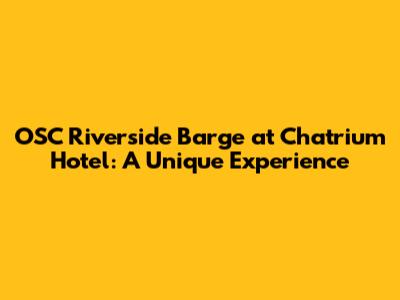 Hey guys! Ever heard of the OSC Riverside Barge? If not, you're in for a treat! It's a seriously cool experience you can have right at the Chatrium Hotel in Bangkok. This article is all about giving you the inside scoop, from what the barge actually is to why you should totally check it out. We're diving deep, so buckle up!