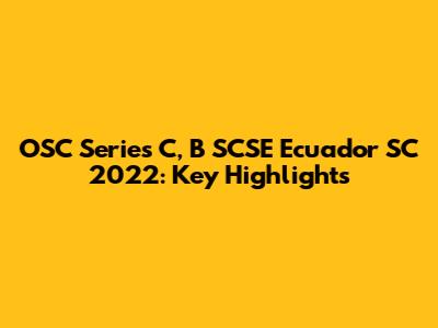 OSC Series C, B SCSE Ecuador SC 2022: Key Highlights