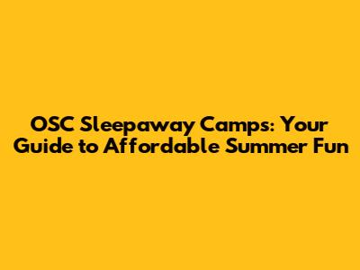 OSC Sleepaway Camps: Your Guide To Affordable Summer Fun