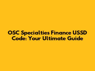 OSC Specialties Finance USSD Code: Your Guide