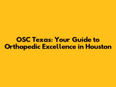 OSC Texas: Your Guide To Orthopedic Excellence In Houston