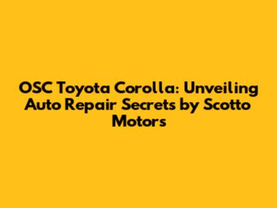 OSC Toyota Corolla: Scotto Motors Auto Repair Guide