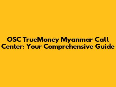 OSC TrueMoney Myanmar Call Center: Your Ultimate Guide