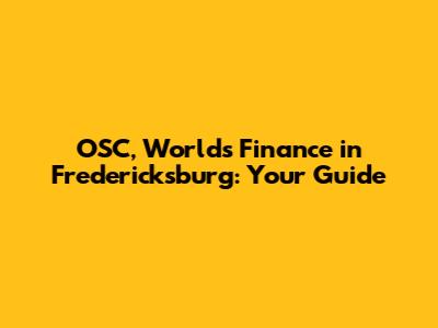 OSC, World's Finance In Fredericksburg: Your Guide