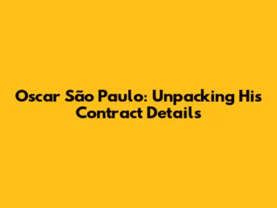 Oscar São Paulo: Unpacking His Contract Details