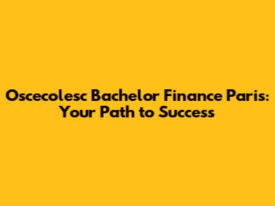 Oscecolesc Bachelor Finance Paris: Your Path To Success