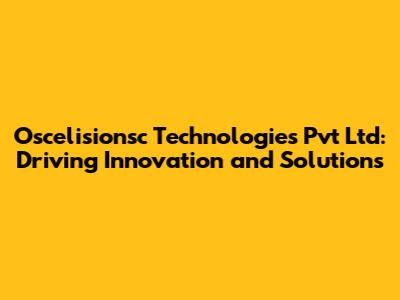 Hey guys! Ever heard of Oscelisionsc Technologies Pvt Ltd? If not, you're in for a treat! This company is making waves with its innovative solutions and cutting-edge technology. Let's dive into what makes Oscelisionsc Technologies a name to remember.
