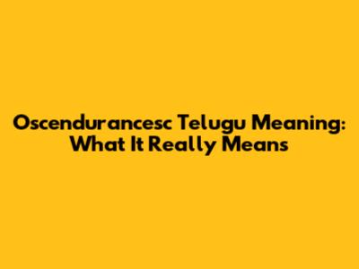 Oscendurancesc Telugu Meaning: What It Really Means