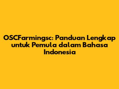 OSCFarmingsc: Panduan Lengkap Untuk Pemula Dalam Bahasa Indonesia