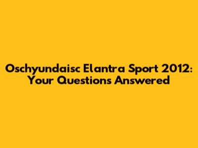 Oschyundaisc Elantra Sport 2012: Your Questions Answered