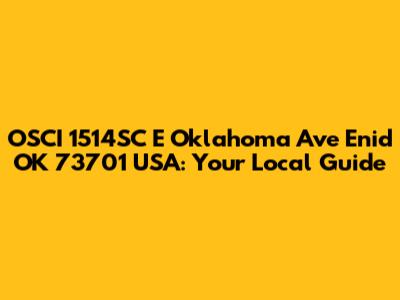 Hey there, folks! Ever found yourself scratching your head about a particular address? Well, let's dive into the details of OSCI, specifically 1514SC E Oklahoma Ave, Enid, OK 73701, USA. This guide is your go-to resource, whether you're a local or just passing through. We're going to break down everything you need to know about this spot, covering potential services, related businesses, and other helpful info. So, buckle up, because we're about to explore the ins and outs of this Enid, OK address!