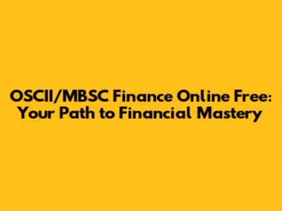 OSCII/MBSC Finance Online Free: Your Path To Financial Mastery