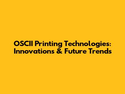 OSCII Printing Technologies: Innovations & Future Trends