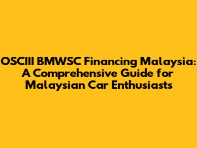 Hey guys! So, you're eyeing that sleek BMWSC and dreaming of cruising around Malaysia in style? Awesome! But let's talk about the nitty-gritty: financing. Navigating the world of car loans can feel like a maze, especially when you're dealing with specific models and financial institutions. That's where this guide comes in. We're diving deep into OSCIII BMWSC financing in Malaysia, breaking down everything you need to know, from understanding the basics to securing the best possible deal. Whether you're a seasoned car buyer or a newbie, this is your one-stop shop for all things BMWSC financing in Malaysia. Let's get started, shall we?