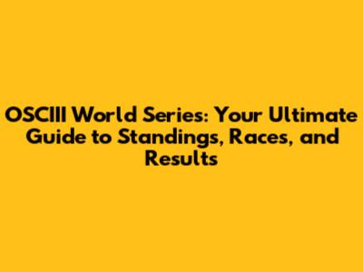 OSCIII World Series: Rankings, Races, And Results