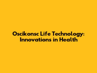 Oscikonsc Life Technology: Innovations In Health