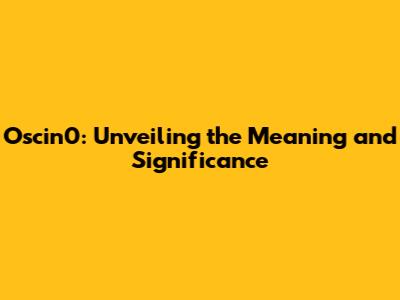 Oscin0: Unveiling The Meaning And Significance