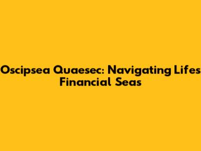 Oscipsea Quaesec: Navigating Life's Financial Seas