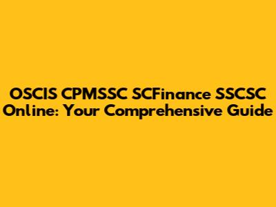 OSCIS CPMSSC SCFinance SSCSC Online: Your Guide
