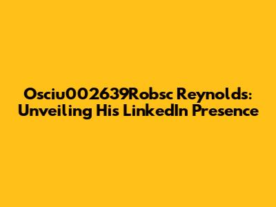 Osciu002639Robsc Reynolds: Unveiling His LinkedIn Presence