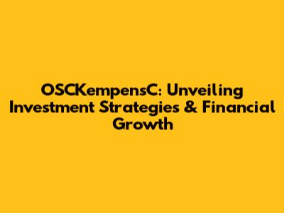 OSCKempensC: Unveiling Investment Strategies & Financial Growth