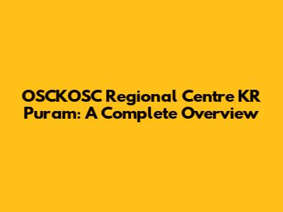 OSCKOSC Regional Centre KR Puram: A Complete Overview