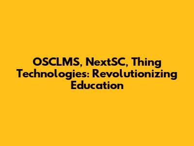 OSCLMS, NextSC, Thing Technologies: Revolutionizing Education