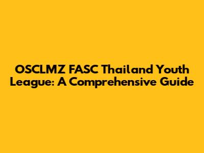 OSCLMZ FASC Thailand Youth League: Everything You Need To Know
