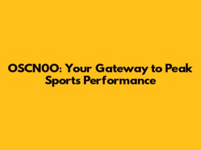 OSCN0O: Your Gateway To Peak Sports Performance