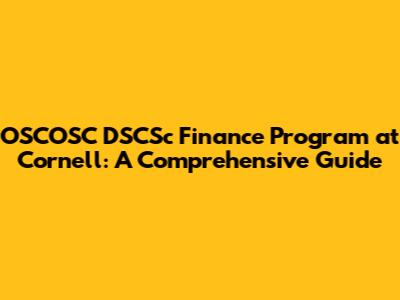 OSCOSC DSCSc Finance Program At Cornell: A Comprehensive Guide