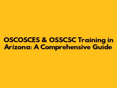 OSCOSCES & OSSCSC Training In Arizona: A Comprehensive Guide