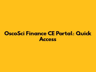 OscoSci Finance CE Portal: Quick Access