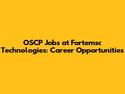 OSCP Jobs At Fortemsc Technologies: Career Opportunities