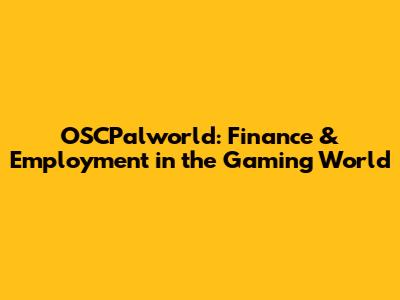 OSCPalworld: Finance & Employment In The Gaming World