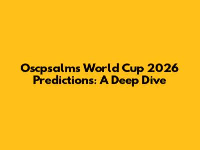 Oscpsalms' Predictions: World Cup 2026 Insights