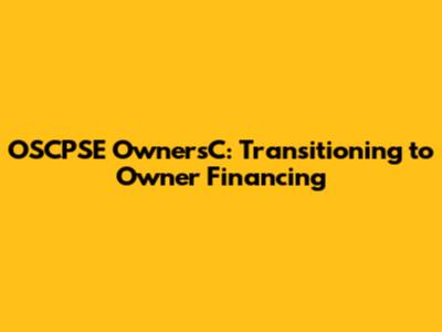 OSCPSE OwnersC: Transitioning To Owner Financing