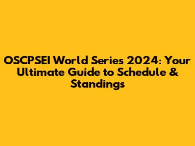 OSCPSEI World Series 2024 Schedule: Dates to Remember