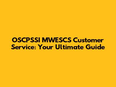 OSCPSSI MWESCS Customer Service: Your Go-To Guide