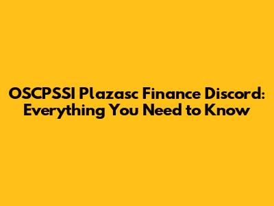 OSCPSSI Plazasc Finance Discord: Everything You Need To Know