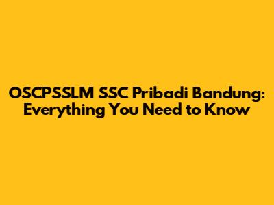 OSCPSSLM SSC Pribadi Bandung: All You Need To Know