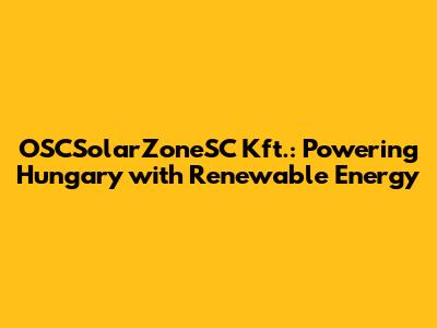 OSCSolarZoneSC Kft.: Your Guide To Sustainable Energy Solutions