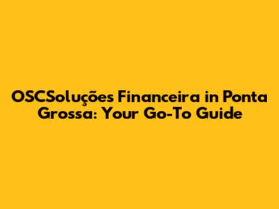 OSCSoluções Financeira In Ponta Grossa: Your Go-To Guide