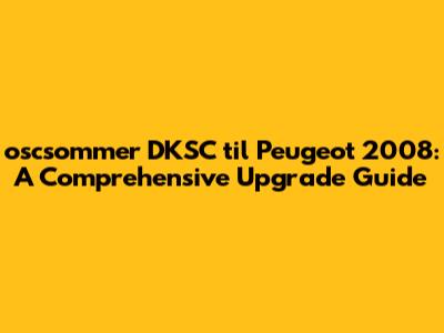 Hey guys! Are you looking to give your Peugeot 2008 a serious upgrade? Let's dive into the world of oscsommer DKSC and how it can transform your ride. This guide will cover everything you need to know, from what oscsommer DKSC is to how it can enhance your Peugeot 2008's performance and aesthetics. So, buckle up and let's get started!