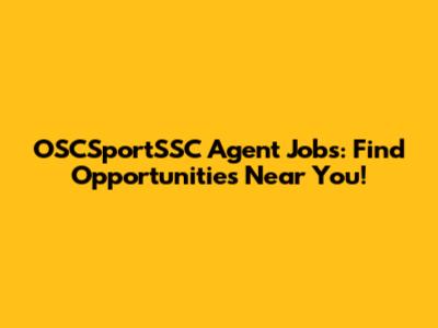 OSCSportSSC Agent Jobs: Find Opportunities Near You!