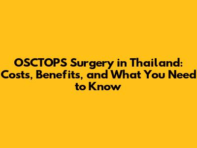 OSCTOPS Surgery In Thailand: Costs, Benefits, And What You Need To Know
