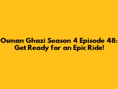 Hey everyone! Are you ready for another thrilling episode of Osman Ghazi? Season 4 Episode 48 is just around the corner, and trust me, you don't want to miss it! This historical Turkish drama has captured the hearts of millions worldwide, and for good reason. With its gripping storyline, stunning visuals, and stellar performances, it's a show that keeps you on the edge of your seat. Let's dive into what makes this series so special and what you can expect from the upcoming episode.