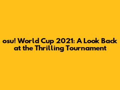 Osu! World Cup 2021: A Look Back At The Thrilling Tournament