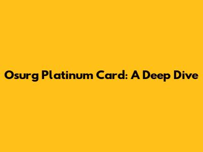 Osurg Platinum Card: Is It Right For You?