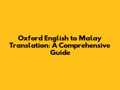 Oxford English To Malay Translation: A Comprehensive Guide