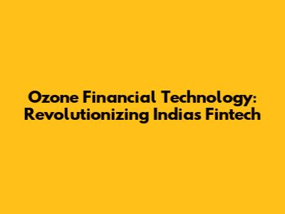 Ozone Financial Technology: Revolutionizing India's Fintech